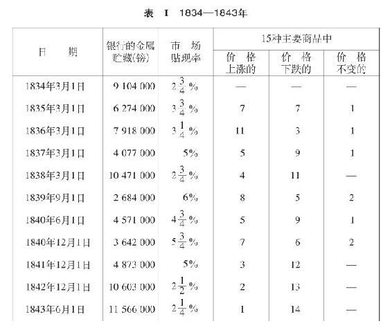 (第825号)“如果英格兰银行企图把它已经开始的交易进行到底,现行银行立法势必会垮台的第一个时期〈1825年7月1日以后〉应该是1837年2月28日;当时银行拥有390万镑至400万镑,而它所持有的准备金可能只有65万镑了。另一个时期是在1839年,由7月9日继续到12月5日。”——(第826号)“这一次的准备金是多少呢?9月5日,准备金共计缺少20万镑。11月5日增加到大约100万镑到150万镑。”——(第830号)“1844年的法令,如果在1837年,一定会使银行无法支持对美贸易。”——(第831号)“有三家经营对美贸易的最大的商行倒闭了……几乎每一家经营对美贸易的商行都丧失了信用,如果当时银行不出来援助,恐怕只有一两家商行能够维持下去。”——(第836号)“1837年的紧迫情况,不能和1847年的紧迫情况相比。1837年的紧迫情况,主要只限于对美贸易。”——(第838号)“〈1837年6月初,银行董事会讨论过怎样解决紧迫情况的问题〉那时有几位先生坚持这样的见解……认为正确的原则应是提高利息率,由此降低商品的价格;总之,是使货币昂贵,商品低廉,用这个办法来完成对外的支付。”——(第906号)“1844年的法令对银行权力所实行的人为限制,代替了银行权力的旧有的自然限制,即该行实有金属储备额的限制。这个办法造成了人为的营业上的困难,从而使商品价格受到影响,如果没有这个法令,这种影响是完全可以避免的。”——(第968号)“1844年的法令规定,银行的金属储备通常不得锐减到950万镑以下。这可能会造成对价格和信用的压力,这种压力又会引起外汇率的变动,致使金的输入增加,从而增加发行部的金的数额。”——(第996号)“在现在这样的限制下,当需要银来影响外汇率的时候,您〔银行〕就不可能支配足够的银。”——(第999号)“为了什么目的要规定银行的银储备只限于它的金属储备的五分之一呢?——这个问题我不能回答。”