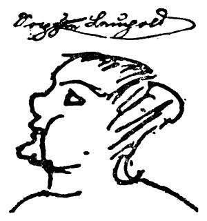 这是小索菲娅·洛伊波尔德画的,她刚才到商行来看望过我。老头儿FN2和在家里用饭的埃伯莱因这时正在参加盛大的午宴。啊,我本来可以向你讲一些有关这次午宴,有关未经宣布的订婚礼和偷偷接吻的趣闻,但这些事不宜讲给女子寄宿学校的女孩子们听。等我回家时,你很快就会知道这些事。那时我在花园里坐着,你给我拿来一大罐啤酒和几片夹香肠的黄油面包,我就说:好吧!我亲爱的妹妹,因为你给我拿来了啤酒,加之今晚是一个如此迷人的夏天的傍晚,所以我现在向你讲述一次盛宴的情况,那是1840年10月29日在不来梅马蒂尼街11号王国萨克森领事馆举行的。我能告诉你的暂时只是:在这天的宴会上,喝了大量的马德腊酒、波尔图酒、普亚克酒、上索泰恩酒和莱茵葡萄酒。虽然那里一共只有五个男人,他们的酒量全都不错,差不多同我一样。——因此,我们在那里毫无拘束。我虽然未蒙引见给一位大公夫人殿下和许多最尊贵的公爵夫人,但我们仍然很愉快。幸运得很,我是如此的近视,以致完全不知道从我身边走过的那些尊贵的、十分尊贵的和最尊贵的大人物是什么样子。如果下次你有幸被引见给这样一位最仁慈的大人物,你一定要写信告诉我,她漂亮吗,否则这些大人物完全不使我发生兴趣。我们高贵的市政厅酒家,现在设备非常好,在那里可以很舒服地在酒桶之间闲坐。上个星期天我们在小酒馆里举行过一次小胡子宴会。事情是这样:我发了一个通知给全体能够蓄胡子的年轻人说,消除这一切庸人偏见的时候终于到来了,我们能做到这一点的最好方法,就是我们一致蓄胡子。谁有足够的勇气起来反对庸俗偏见并且蓄胡子,谁就签名。我立刻就征集到十来个小胡子,并将10月25日这一天——那时我们蓄胡子已经一个月了——定为集体蓄胡子纪念日。我仔细地考虑过这件事将如何进行,我买了一点染胡子药水带在身边。后来发现,有的人胡子很美,可惜完全是灰白的;有人则接到自己保护人的命令,要他剃掉这种犯法的修饰。但是不管怎样,当天晚上我们一定得有随便什么样的胡子;谁要是没有,就要他给自己描上。后来我起身致祝酒词如下: